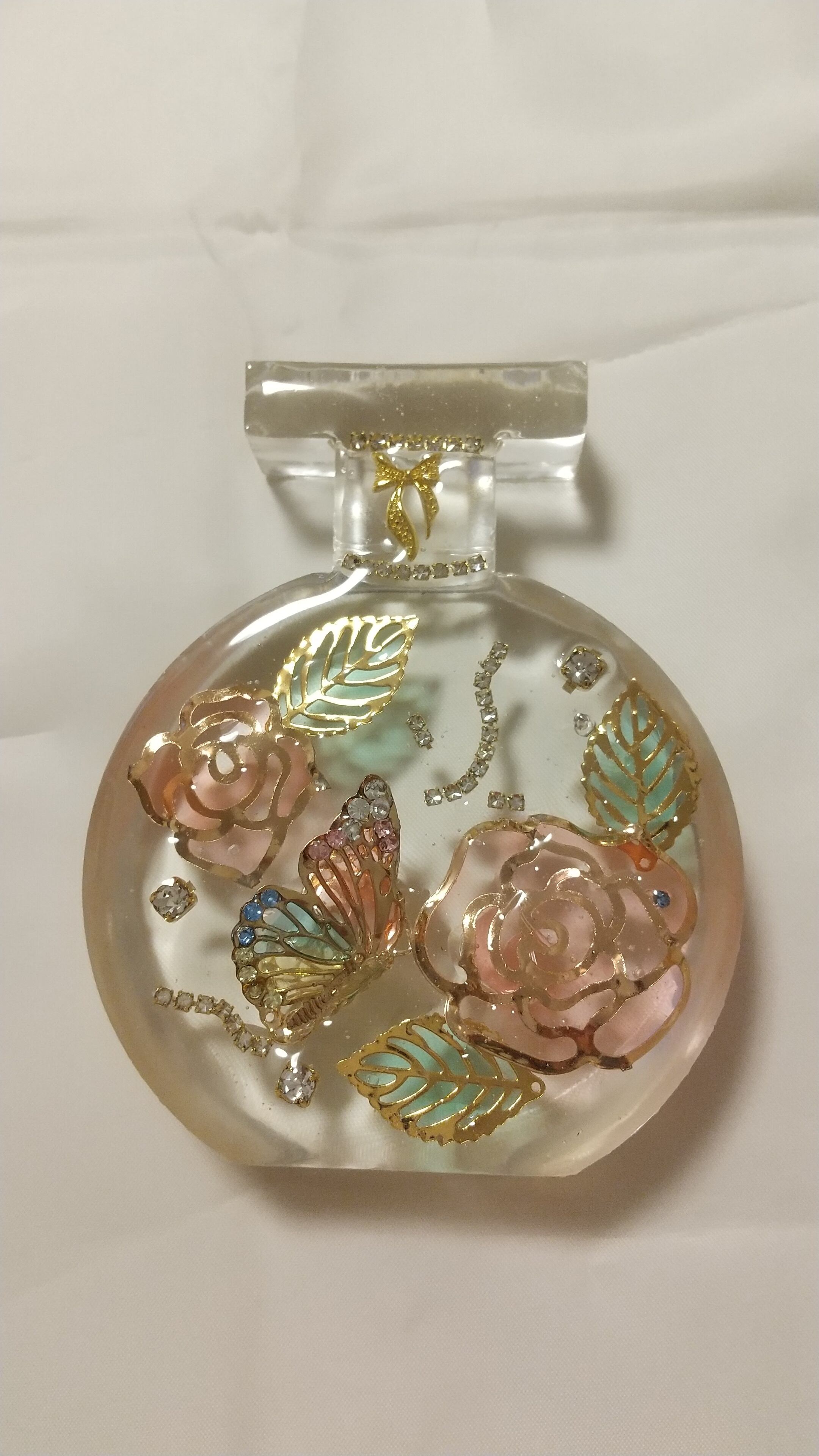 蝶の部分は飛び出すようにアレンジしております。あとはレジンで埋め込んであります。